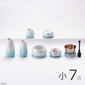 仏具 セット やわらぎ ラスターブルー 小サイズ 7点 /仏具セット ミニ モダン 手元供養仏具 おしゃれ仏具 日本製 国産 陶器製