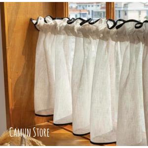 Ponoa ポノア カフェカーテン バイヤステープ付き 生成り リネン 小窓 間仕切りお洒落 (BK)