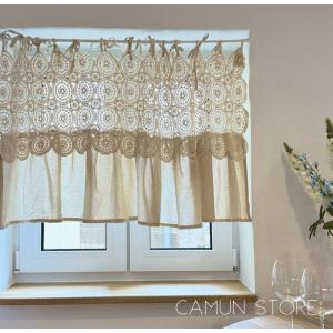 Ponoa(ポノア) カフェカーテン 北欧 おしゃれ レース 刺繍 網目 モロッコ ダマスク柄