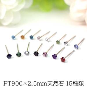 小さな天然石のPTピアス セカンドピアス つけっぱなし プラチナ 天然石 2.5mm 軸太0.65mm ポスト10mm 品質保証書つき 金属アレルギー対応 片耳 1個 日本製