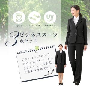 リクルート ビジネス スーツ 3点 セットアップ 洗える レディース ジャケット パンツ スカート 面接 就活 新卒 説明会 入社式 OL 通勤 ストレッチ UVカット 黒