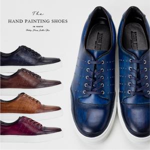 スニーカー 千手染 千手染め monmodel メンズ レザー 本革 ローカット レースアップ ブラック ブラウン ネイビー 黒 青 紺 茶 紅 1901