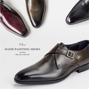 ビジネスシューズ 革靴 本革 千手染 モンクストラップ サイドストラップ マッケイ製法 レザー Mon Model 紳士靴 メンズ 黒 茶 紅 2006
