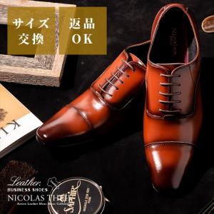 ビジネスシューズ 千手染 革靴 本革 ストレートチップ 内羽根 マッケイ製法 レザー monmodel ドレスシューズ 紳士靴 黒 茶 2002