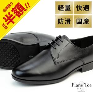 ビジネスシューズ プレーントゥ 本革 3E 幅広 防滑 外羽根 紳士靴 革靴 官公庁 訳あり 日本製 メンズ 黒 ブラック 310