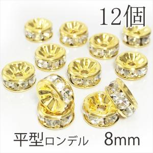 ロンデル 平型 ゴールド 8mm 12個 A級 送料無料 ラインストーン メタルパーツ デコパーツ スペーサー ビーズ アクセサリーパーツ 修理 補修
