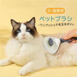 ペットブラシ ブラシ 犬 猫 兼用 ワンプッシュ ブラッシング マッサージ 抜け毛 お手入れ 丸洗い可能