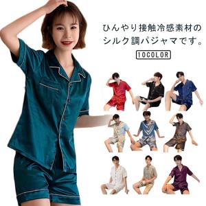 薄手 シルク調 半ズボン シルク調 涼しい 春夏 前開き 半袖 無地 パジャマ ひんやり メンズ ルームウェア 部屋着 レディース 接触冷感 男性 女