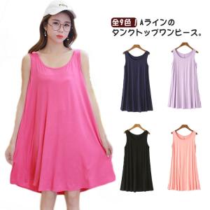 トップス 接触冷感 タンクトップ 夏 レディース ロングタンクトップ ワンピース レイヤード ラウンドネック 薄手 大きいサイズ シンプル Aライン