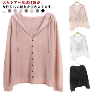 vネック フード付き レディース 夏 UV対策 接触冷感 冷感 薄手 春 透け感 ショート丈 UVカット オフィス カーディガン ゆったり シアーカー