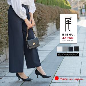 「日本製」ワイドパンツ レディース きれいめ センタープレス フレアパンツ 大きいサイズ 仕事 オフィス 黒 ブラック フォーマル セレモニー 卒業式 入学式