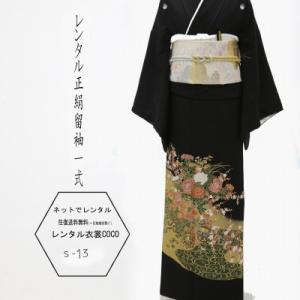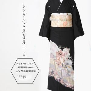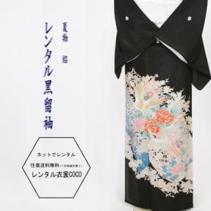 レンタル 衣裳 留袖 薄色雉琵琶模様柄留袖 M寸〜L寸 黒留袖 留め袖レンタル 留袖草履バッグ 往復送料無料 着物 結婚式 正装 叔母留袖 親族留袖