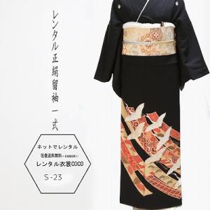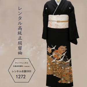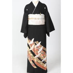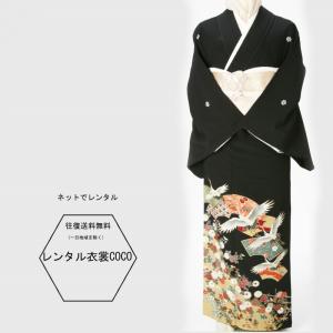 レンタル衣裳 お母様 親戚 正装 留袖鶴と吉兆文様柄レンタル黒留袖・L寸11.13.15号少しゆったりサイズ留袖格安 留め袖 着物 貸衣装