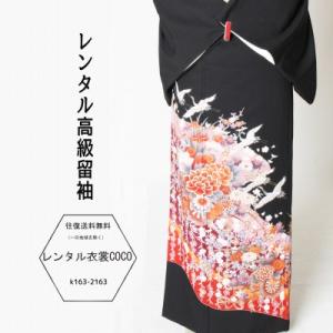 レンタル衣裳華扇面鶴柄高級黒留袖M寸高級黒留袖M寸M〜L寸柄黒留袖M寸・レンタル/高級留袖/貸衣装往復送料無料結婚式、とめそで