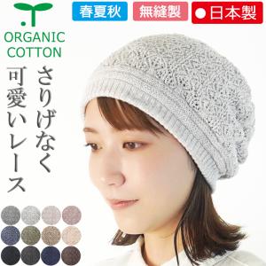 医療用帽子 秋冬春用 オーガニック ラフニットレース柄キャップ 日本製 レディース 抗がん剤副作用 脱毛 手術後用ケア帽子