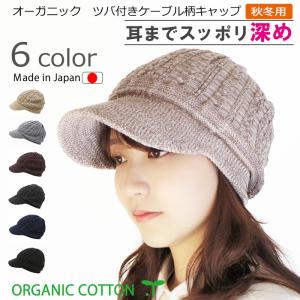 医療用帽子 秋冬用 オーガニック 【ツバ付き】ケーブル柄キャップ【秋冬用】【耳までスッポリ】【深め】抗がん剤帽子 脱毛