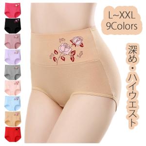 ショーツ レディース 綿 深め ハイウエスト 産後 深履き 女性 インナー パンツ 下着 伸縮性 フィット感 大きい リラックス 40代 50代 30代 安い 人気 花付き