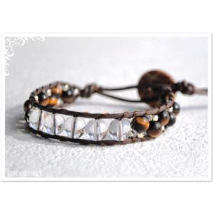 【手芸キット】ココロキット c021b 天然石とビーズのオルタネイト・ラップブレス タイガーアイ・水晶×ダークブラウン★レディース〜メンズサイズ対応 他