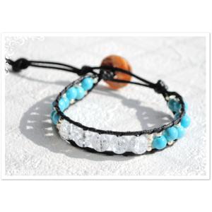 【手芸キット】ココロキット c021c 天然石とビーズのオルタネイト・ラップブレス トルコ石ブルー・クラック水晶×ブラック★レディース〜メンズサイズ対応 他