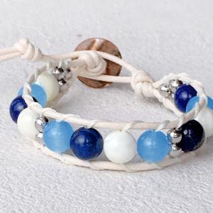 【手芸キット】ココロキット c025d 天然石のラップブレスレット ラピスラズリ・ブルーカルセドニ・マザーオブパール★レディース〜メンズサイズ対応 他