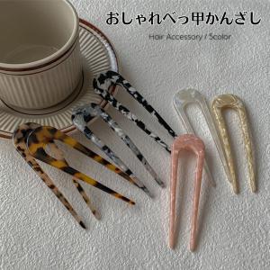 かんざし べっ甲 マーブル ヘアアクセサリー 簪 U字コーム おしゃれ 大人 かわいい 着物 ブラウン ホワイト HP-12
