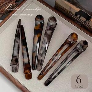 ヘアークリップ コンコルドクリップ くちばしクリップ ダッカール 前髪クリップ ヘアアクセサリー べっ甲 長め 細め ブラック ブラウン まとめ髪 大きめ CR-140
