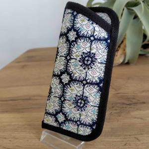ミナペルホネン/forest wave + anemoneネイビー/メガネケース ネックストラップにもmina-perhonen
