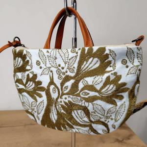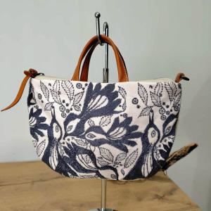 【送料無料】ミナペルホネン/forest tileフォレストタイルネイビー/ミニラウンドショルダー革黒mina-perhonen