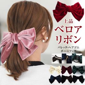 バレッタ リボン 大きめ ベロア レディース ヘアゴム ポニーフック 大きい 結婚式 卒業式 かわいい ヘアク