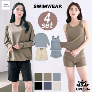 水着 レディース 長袖 オーバーサイズTシャツ 水着 4点セット 指穴 付き 紫外線遮蔽率99.9%以上 体型カバー お腹が出ない UVカット ts008set4