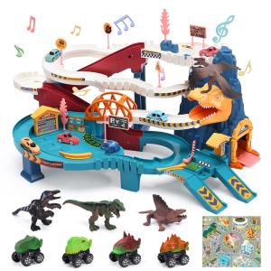 Cute Stone 恐竜おもちゃ 41点レールセット 大冒険 電動 組み立て 恐竜フィギュア 恐竜車 車両つき 大型マップ付き 鉄道玩具 プレゼント