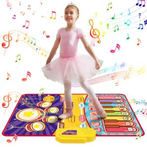 ピアノマット おもちゃ Skirfy ダンスマット 子供向け 知育玩具 2in1遊び方 鍵盤楽器 ドラムモード 折り畳み式 おもちゃ 防水素材 滑り止め 親子ゲーム ギフト