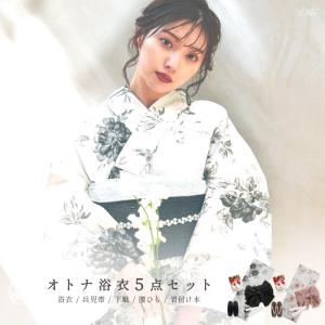 【先行予約/5月中旬より順次発送予定】浴衣 レディース セット 簡単(ゆかた・しわ兵児帯・下駄・着付け本・腰ひも)綿 ピンク 白 黒