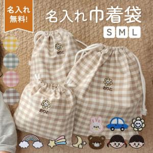 名入れ刺繍 名前入り 巾着袋 2サイズ 入園 入学 給食袋 コップ入れ おむつ入れ 着替え入れ ミルク入れ