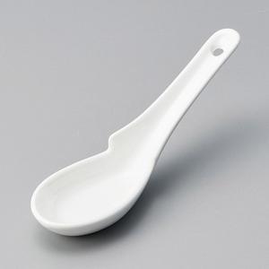 レンゲ 引掛 段付 スプーン 陶器 白 1人用 鍋用 ホワイト 中華 業務用食器