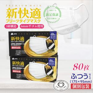 マスク ふつう 不織布マスク 大人用 個別包装 レギュラーサイズ 40枚 x 2箱 80枚 3層構造 高密度フィルター 大容量 柔らかい 新快適 耳が痛くない 花粉症対策