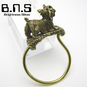 金色の犬 ヨークシャーテリアキーリング ブラス 真鍮(キーホルダー、キーチェーン、鍵、犬、ドッグ、Dog、動物、Yorkshire Terrier、小型犬)