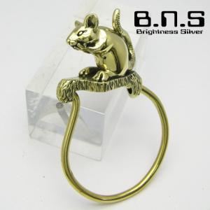 金色のねずみ マウスキーリング 真鍮 ブラス (キーホルダー、キーチェーン、鍵、ネックレス、ネズミ、鼠、ラット、ハムスター、クマネズミ、動物)