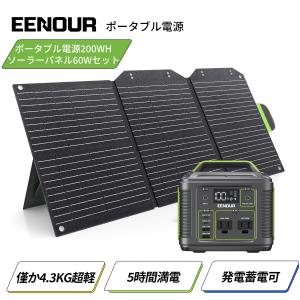 EENOUR 200Wh 54000mAh ポータブル電源 ソーラーパネル セット 小型 P200+60W 蓄電池 発電機 バッテリー充電器 防災