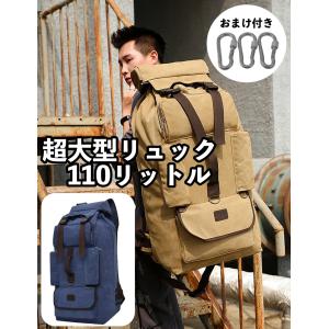 超大型リュック メンズ 大容量 丈夫 帆布 バックパック カラビナ3個付 110L 手提げ キャンバス生地 シンプル ミリタリー アウトドア キャンプ 旅行 登山 非常袋