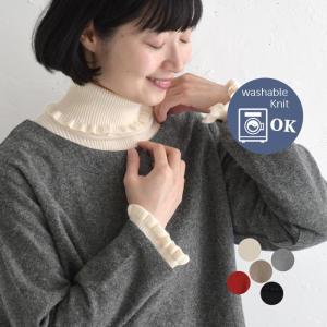 クーポンで30%OFF ニット セーター 長袖 レディース フリルタートルネック ふわもち 洗える 柔らか 25AW1107,