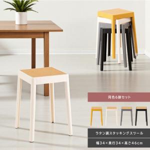 スツール 椅子 スタッキング 6脚 四角 北欧 ラタン調 プラスチック 樹脂 室内 屋外 高さ46 完成品 スタッキングチェア 背なし イス 積み重ね カフェ アウトドア