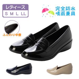 レディース エナメル調 レインパンプス レインシューズ レインローファー ラウンドトゥ ウェッジソール 晴雨兼用 防水 防滑 22.0〜25.0 af_25058 基本送料無料