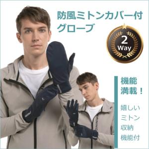 手袋 防風ミトンカバー付きグローブ ミトン 防寒対策 メンズ レディース 人気 スマホタッチ対応 リフレクター 送料無料 / SMサイズ MLサイズ ブラック ネイビー