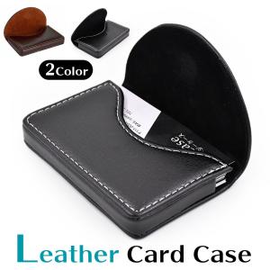 レザー製 名刺入れ カードケース コンパクト マグネット式 名刺収納 ブラック ブラウン 黒 茶色 父の日 めいしいれ