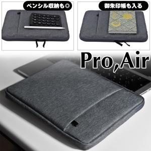 ポケット付き iPad ケース Air11インチ Pro10.5 9.7 キャンバス スリーブ グレー air3 air2 Kindle Fire HD10 テンキー収納