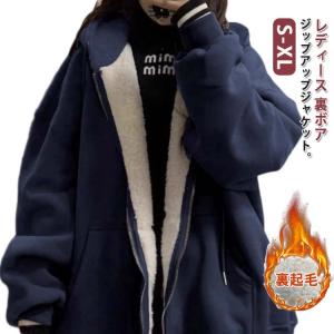 裏ボア パーカー レディース ジップアップパーカー ボアパーカー 裏起毛 極暖 ボア アウター ロング ジャケット カーディガン 秋 冬 裏フリース