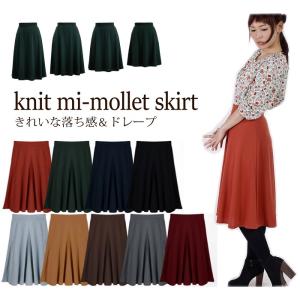 日本製 ミモレ丈 ポンチ素材フレアスカート 丈が選べる 大人丈のふんわりフレア【通勤 オフィス ミモレ フレアスカート】