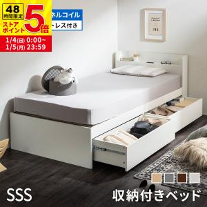収納ベッド 大容量 ボンネルコイルマットレス チェストベッド セミシングルショート 大容量収納 マット付き フルスライドレール