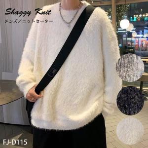 メンズ シャギーニット モヘアタッチ セーター オーバーサイズ 大きなサイズ あったか 長袖 ベーシック プルオーバー トップス 韓国
